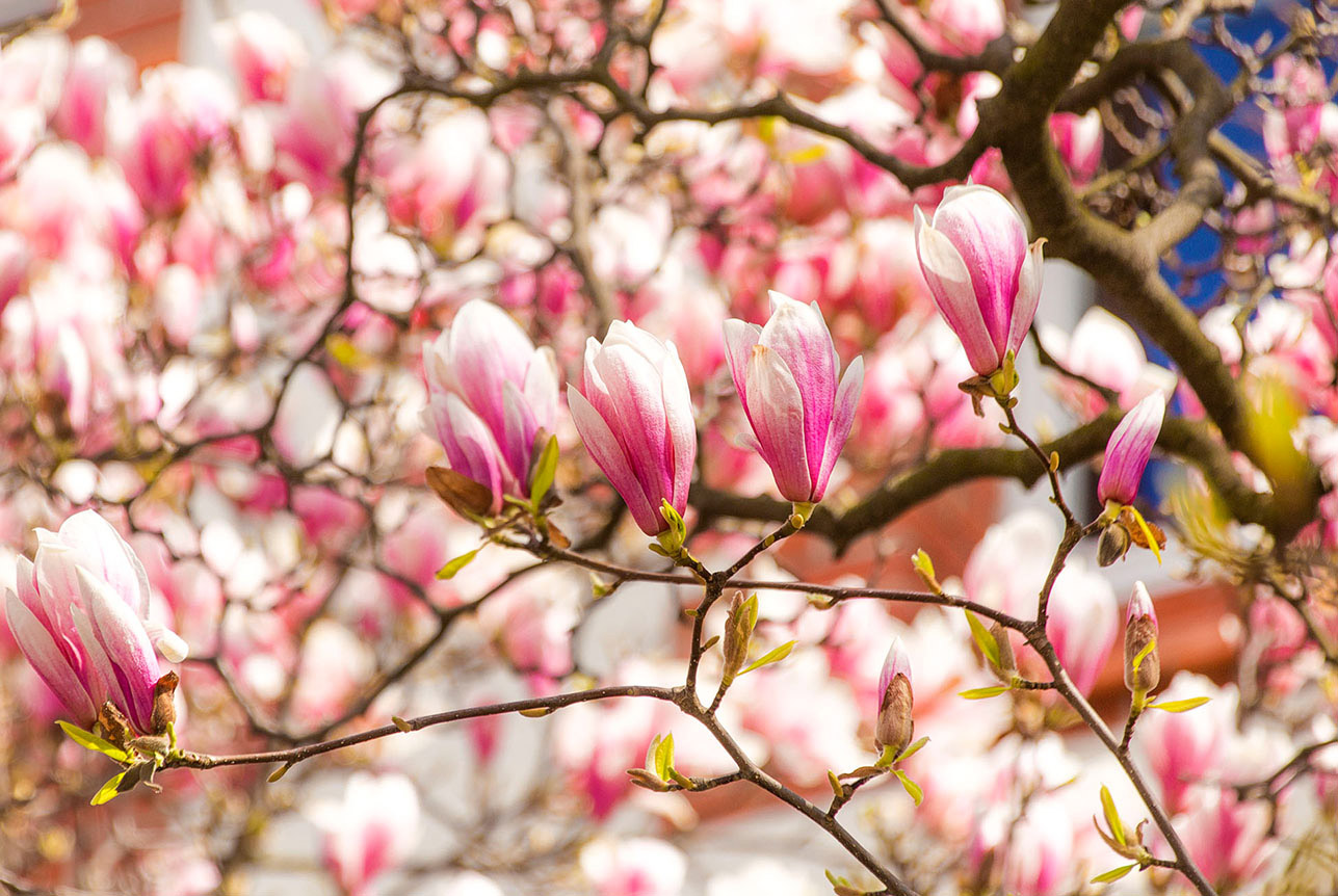 Magnolia jak z obrazu – krnąbrna, jakby skręcona w tanecznym geście, o gałęziach biegnących w zaskakujące strony. A gdy zakwita, olśniewa wielkimi, pachnącymi kwiatami. Dla bydgoszczan to niezawodny znak, że wiosna już nie ustąpi. Czasem, niczym kapryśna dama, potrafi zakwitnąć także w sierpniu, by zaskoczyć przechodniów. Rośnie przy jednym z budynków dawnego Instytutu Rolniczego im. cesarza Wilhelma (1906), w którym później mieścił się Państwowy Instytut Naukowy Gospodarstwa Wiejskiego, a dziś – Wydział Nauk Biologicznych Uniwersytetu Kazimierza Wielkiego. Wnętrza gmachu zdobią motywy roślinne, mozaiki i metaloplastyka – magnolia jakby wyszła z tej dekoracji i stała się jej żywym uzupełnieniem. Trudno dziś powiedzieć, czy takie było zamierzenie ówczesnych architektów i urbanistów. Obecnie to jedno z najbardziej fotogenicznych drzew Bydgoszczy – symbolicznie łączy naukę, naturę i piękno. Od stu lat magnolia wita pracowników tego miejsca, a dziś również studentów. A wiecie, że magnolie były prawdopodobnie pierwszymi roślinami kwiatowymi, które pojawiły się na naszej planecie jeszcze przed epoką lodowcową? Większość gatunków magnolii pochodzi z Dalekiej Azji – Chin i Japonii, gdzie tradycja ich uprawy sięga ponad 2,5 tys. lat, a część także z Ameryki Północnej. Do Europy pierwsze magnolie sprowadzono w XVII w., do Polski – w kolejnym stuleciu.