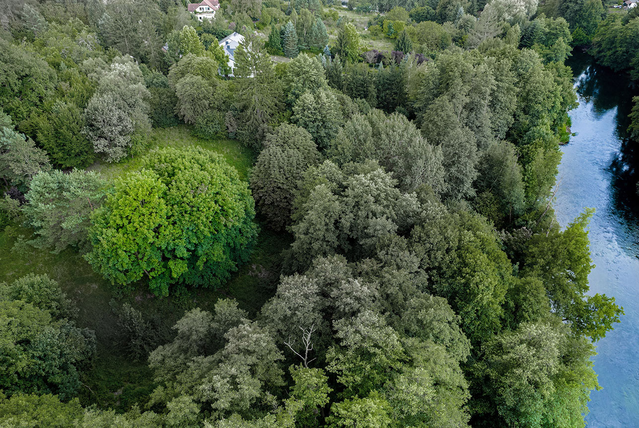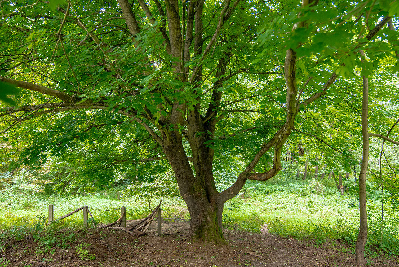 Na północnych rubieżach Bydgoszczy, z dala od miejskiego zgiełku, rośnie samotny klon. Stoi niczym brama miasta – nieformalny znak graniczny, który wita przybyszów z północy. Osiedle Piaski nie posiada bogatych tradycji historycznych. Na mapie okolic Bydgoszczy sporządzonej przez Carla Friedricha Schulza w 1857 roku widać, że teren na wysokim tarasie Brdy nie był wówczas zamieszkany. U podnóża zbocza doliny rzeki znajdowała się natomiast kolonia Jachcie – kilkanaście domostw skupionych nad wodą. Całość obecnych Piasków włączono w granice Bydgoszczy dopiero w kwietniu 1920 roku. W okresie międzywojennym okolica była popularnym celem spacerów, wycieczek i spływów kajakowych. Wiadomo, że również Leon Wyczółkowski korzystał z jej uroków – być może odpoczywał właśnie w cieniu tego drzewa. Jeszcze do lat 50. XX wieku Piaski pozostawały słabo zurbanizowanym, najbardziej wysuniętym na północ fragmentem miasta. Klon nie był częścią żadnej koncepcji urbanistycznej, nie został posadzony w ramach planu architektów krajobrazu. Rósł dziko, na własnych prawach i warunkach, poza wytyczonym porządkiem miasta. To cień miasta – świadectwo tego, co trwało, zanim pojawił się beton i asfalt. Żadna fotografia nie odda jego potęgi. Masywna sylwetka sprawia wrażenie wolności – jakby wyrósł poza czasem i planem, nieskrępowany niczym. Dziś można w nim dostrzec kształt ogromnej dłoni wyrastającej z ziemi, której palce kierują się ku górze. Przywodzi na myśl mitycznego Leszego – strażnika lasów i drzew. Za kilkadziesiąt lat także ten fragment miasta obejmie zgiełk i zabudowa. Czy klon przetrwa próbę czasu? Na razie trwa nieporuszony – symbol wolności natury na granicy miasta i rzeki.
