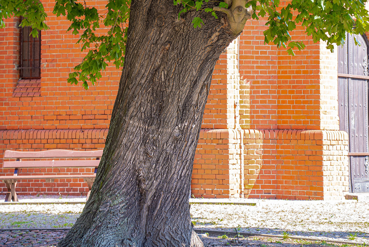 Na pocztówkach z 1905 r. był ledwie drzewkiem, teraz mierzy się z wysokością świątyni, przy której wyrósł. Niegdyś ona dawała mu cień, dziś to Kościół stoi w cieniu drzewa. Przez lata wysłuchał więcej modlitw, westchnień i próśb niż zdołałyby pomieścić kamienne mury kościoła – szeptanych w drodze na mszę, powierzanych pod figurą Chrystusa czy niesionych w żałobnym kondukcie. Klon stał się niemym świadkiem chwil radosnych i bolesnych, codziennych i uroczystych. Plac Zbawiciela wytyczono w 1853 r., podczas planowania nowych dzielnic śródmiejskich łączących nowy dworzec kolejowy ze Starym Miastem. Pierwotnie stanowił cmentarz dla folwarku Bocianowo. Jednak w 1861 r. przeznaczono go pod zabudowę sakralną. W latach 1896–1897 wzniesiono tu kościół Chrystusa Pana, a w 1901 r. teren obsadzono zielenią według projektu Konrada Neumanna – dyrektora Ogrodów Miejskich. Skwer o powierzchni 1,6 ha składał się z czterech części, połączonych drogami i trawnikami. Wzdłuż jego obrzeży oraz przy kościele założono zieleńce z drogami i trejażami, stanowiącymi tło ozdobne dla róż, kwiatów bylinowych i pnączy. Na skwerze rosło kilkadziesiąt gatunków drzew, w tym nasz nominowany klon pospolity. Wówczas – niepewne, wątłe drzewko – dziś ściga się z wieżą kościoła. Jest smukły i zdaje się piąć ku niebu. Z pewnością widział spadający hełm pierwotnej wieży kościelnej strącony w czasie walk w 1945 r. . Nieopodal niego w 1947 r. ustawiono figurę Chrystusa, kopię dzieła Thorvaldsena z Kopenhagi, pochodzącą z grobowca rodziny Blumwe na likwidowanym cmentarzu przy ul. Jagiellońskiej. Sacrum i profanum przenikają się tu w ponadczasowym trwaniu. Zatem klon wcale taki „pospolity” nie jest.