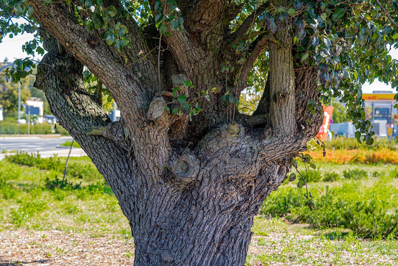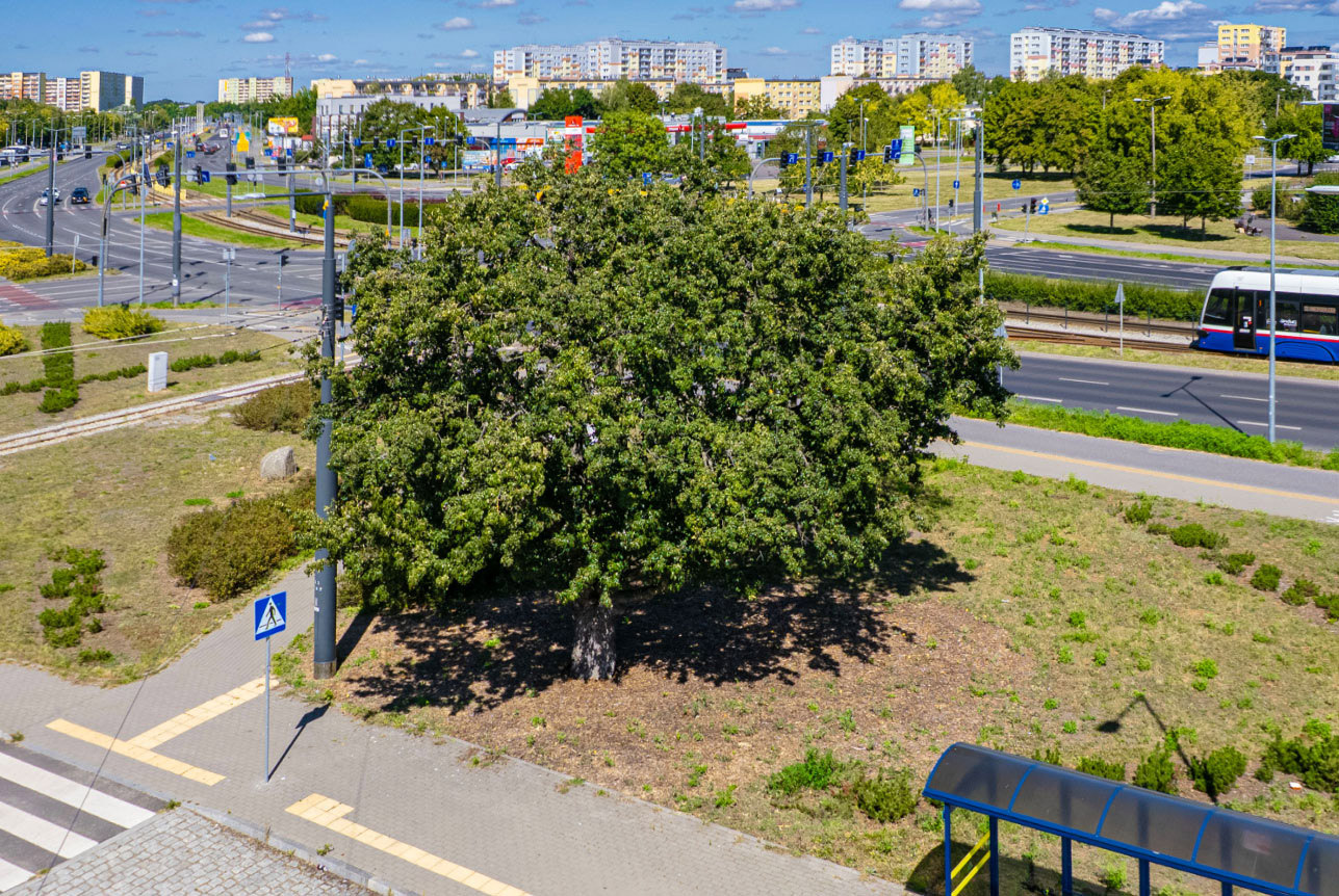 Olbrzymi pień, powyginane gałęzie, a jednak co roku obficie rodzi słodkie owoce. Ta niezwykła grusza przetrwała to, co inne drzewa nie byłyby w stanie: budowę osiedla Wyżyny, powstanie pętli tramwajowej, nowych ulic i kanalizacji. Trwa na przekór światu i miejskiej cywilizacji. To ostatnia żywa pamiątka dawnych folwarków i sadów, które kiedyś znajdowały się na tym terenie. Można sobie już dziś tylko wyobrażać, kto przed laty zrywał jej owoce i komu je ofiarowywała. To drzewo jest absolutnym ewenementem – w Bydgoszczy nie znajdziecie gruszy o większym obwodzie. Bez pielęgnacji, bez bielenia, trwa w świetnej kondycji - czyżby sama natura otoczyła je opieką? Jej gruszki są słodkie, pachnące – jakby drzewo chciało udowodnić, że starość nie musi oznaczać słabości. Niewątpliwie była świadkiem wielkich przemian otoczenia, w którym wyrosła: z zacisza folwarcznego sadu, poprzez wielkie rozkopane hałdy w trakcie budowy osiedla, aż do wytyczania ulic i torów tramwajowych… Dziś uprzejmie częstuje przechodniów soczystymi owocami, jakby szeptała, że to jej dom i że dojrzewa wraz z miastem i jego mieszkańcami. To żywy pomnik historii i uporu natury. Warto wspomnieć, że obwód najstarszej gruszy w Polsce, o wdzięcznym imieniu Józefinka, rosnącej w miejscowości Nekla koło Wrześni, wynosi 329 cm. Jej wiek szacuje się na ok. 200 lat. Obwód naszej bydgoskiej seniorki – o ile wypada pisać publicznie o gabarytach – jest większy o kilkanaście centymetrów!